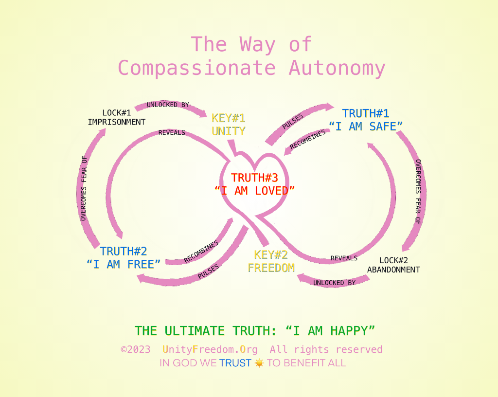 To embody the way of Unity & Freedom is to embody The Way of Compassionate Autonomy. Unity & Freedom is a perception of existence that allows one to live beyond the primordial fears of Imprisonment and Abandonment and to be at eternal peace in Unity and Freedom in existence (the experience of eternal change).